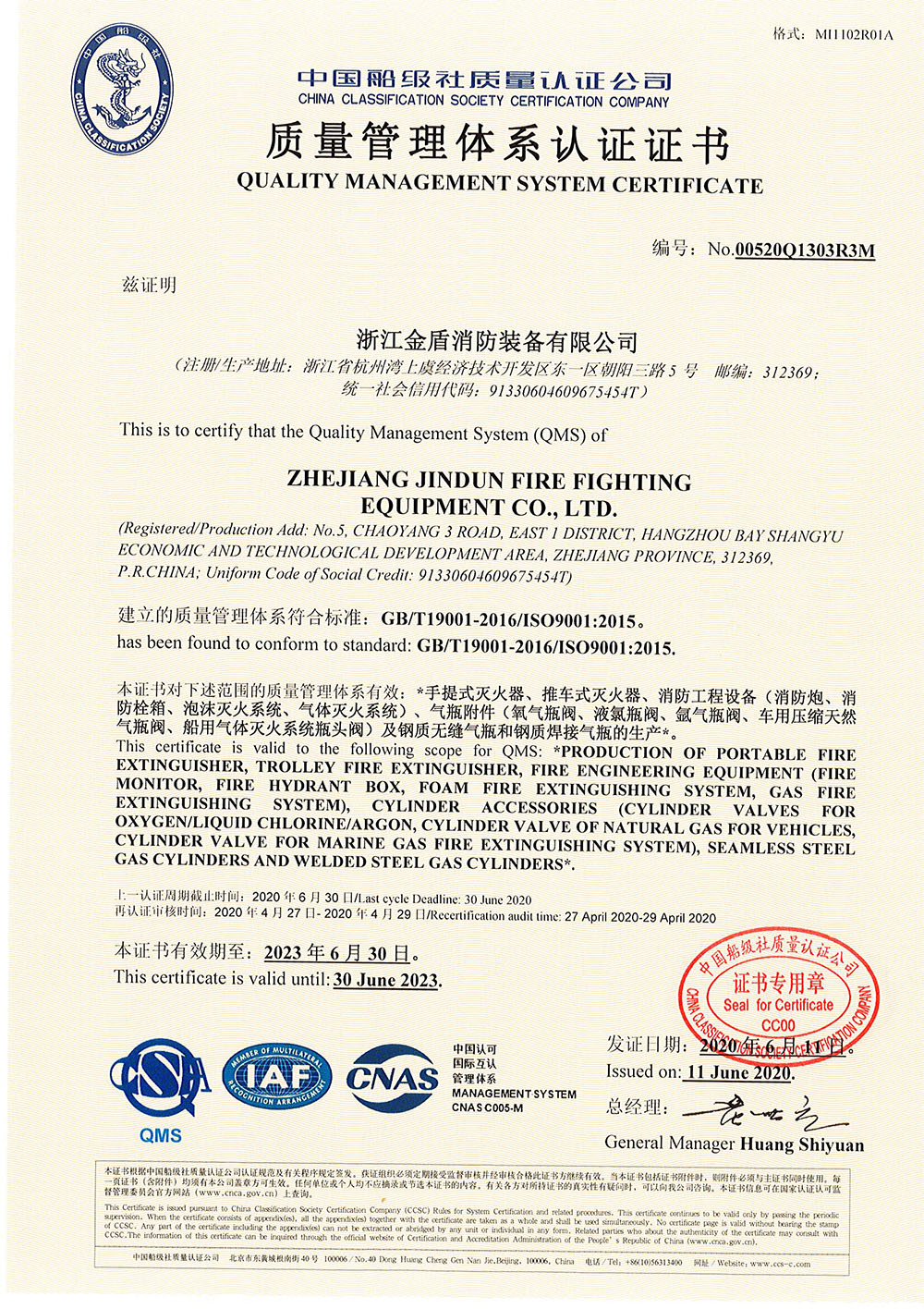 質(zhì)量管理體系認(rèn)證證書