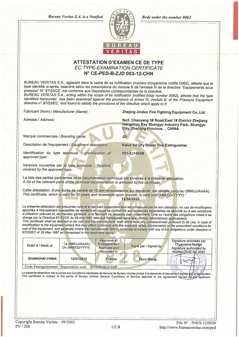 CE證書(干粉閥門)