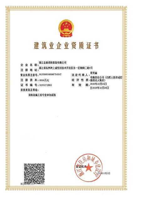 近期,從金盾消防傳來喜訊,憑借公司雄厚的技術和人才的實力,歷經(jīng)紹興市和浙江省建管局的嚴格審核和層層篩查,浙江金盾消防獲得了建筑企業(yè)消防施工二級資質,成為了消防裝備制造行業(yè)首家獲得消防工程施工資質的單位,開啟了浙江金盾消防裝備有限公司消防工程施工業(yè)務的新局面!
