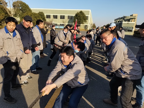 為豐富全體員工的精神文化生活,促進(jìn)在職員工之間的交流,發(fā)揚(yáng)團(tuán)隊(duì)精神,提高團(tuán)隊(duì)凝聚力,金盾消防在2020年的最后一天舉辦了首屆“金盾”杯拔河比賽。參賽的隊(duì)伍分別為鋼瓶車間隊(duì)、滅火器車間隊(duì)、閥門倉(cāng)庫(kù)聯(lián)隊(duì)、質(zhì)保工藝工程聯(lián)隊(duì)、行政設(shè)備聯(lián)隊(duì)。零下五度的酷寒擋不住金盾人的熱情。隨著比賽的進(jìn)行,現(xiàn)場(chǎng)的氣氛一浪高過(guò)一浪。參賽的隊(duì)員更是卯足了勁,使出全身的力量向后拉。啦啦隊(duì)員也是不遺余力的為隊(duì)員加油,現(xiàn)場(chǎng)的加油聲和吶喊聲更是持續(xù)高漲。隨著閥門倉(cāng)庫(kù)聯(lián)隊(duì)和質(zhì)保聯(lián)隊(duì)進(jìn)去決賽,比賽進(jìn)去了前所未有的高潮。經(jīng)過(guò)三局兩勝的艱苦抉擇,閥門倉(cāng)庫(kù)聯(lián)隊(duì)拔得頭籌,取得冠軍,質(zhì)保聯(lián)隊(duì)和行政聯(lián)隊(duì)分獲二三名。最后公司總經(jīng)理陳柯和常務(wù)副總蔣德勇為獲獎(jiǎng)的隊(duì)伍頒獎(jiǎng)。拔河比賽拼的是絕不放棄的意志,拼的是毫不氣餒的精神。通過(guò)此次拔河比賽,提高了公司的團(tuán)隊(duì)凝聚力和戰(zhàn)斗力,同樣也提升了金盾消防堅(jiān)韌不拔的意志力,為2020年畫(huà)上一個(gè)圓滿的句號(hào)!